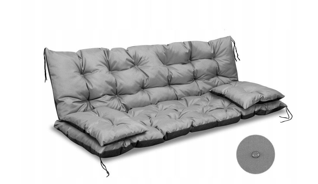 - Na każdym rogu umieszczone są sznurki, dzięki którym możesz poduszki przymocować do ławki czy huśtawki.