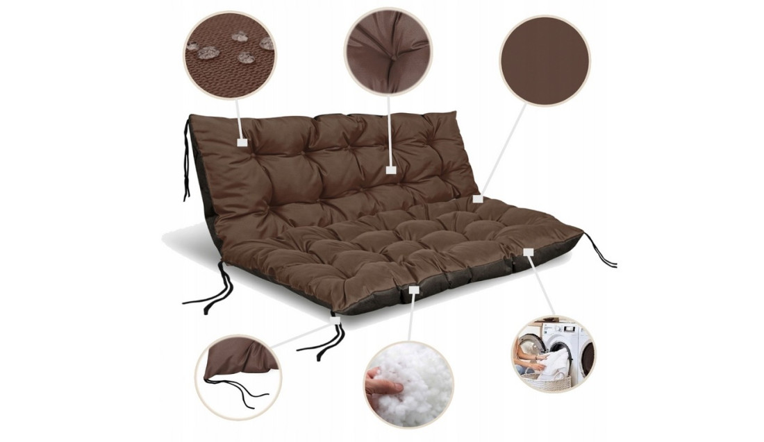 - Na każdym rogu umieszczone są sznurki, dzięki którym możesz poduszkę przymocować do ławki .