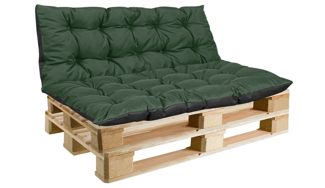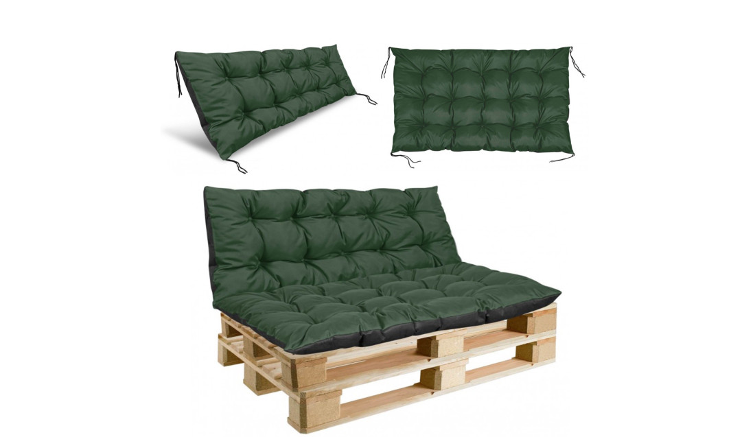 2 WODOODPORNE poduszki oparcie + siedzisko na ławkę z EUROPALET w kolorze zielonym, WYGODA i zadowolenie gwarantowane!