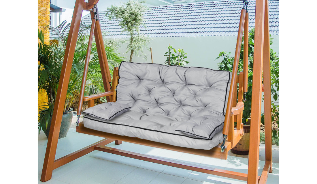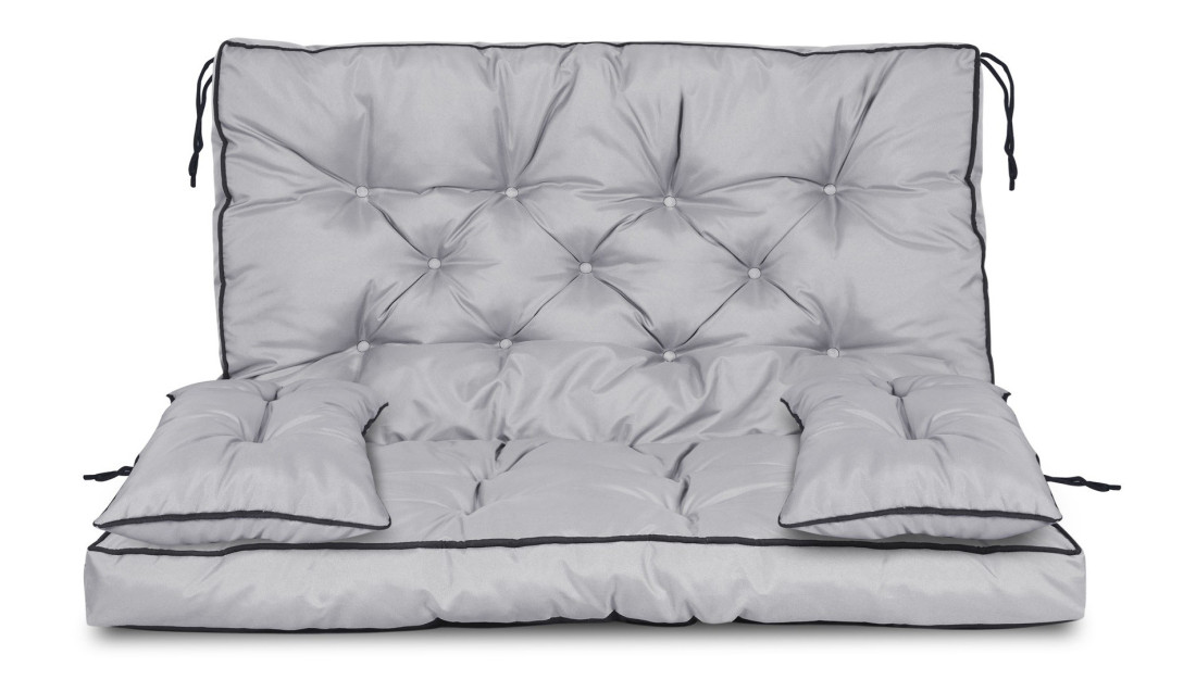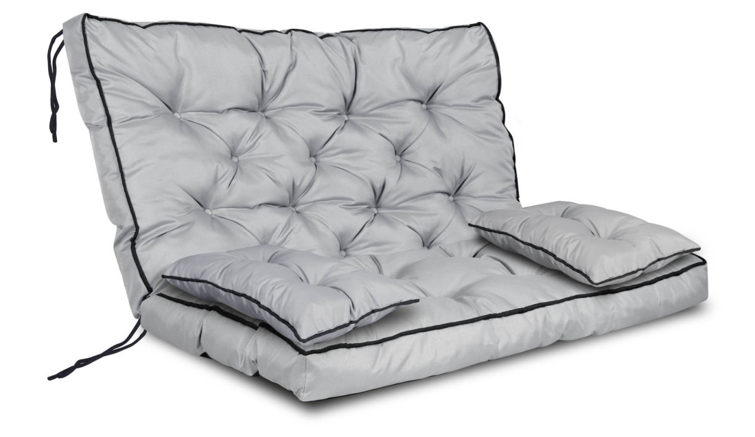 Zestaw wodoodporna poduszka Z WYSOKIM BOKIEM I LAMÓWKĄ na ławkę lub huśtawkę + 2 małe w kolorze ciemnoszarym, WYGODA i zadowolenie gwarantowane!