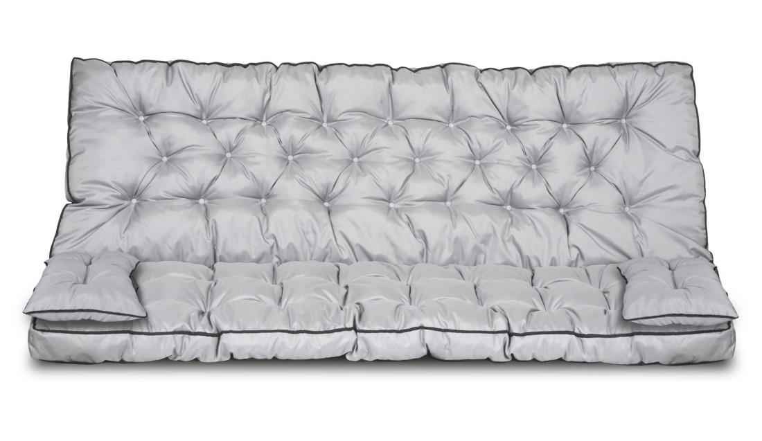 - Zestaw składa się z dwóch poduszek ze sobą zszytych: siedzisko + oparcie + 2 małe poduszki.