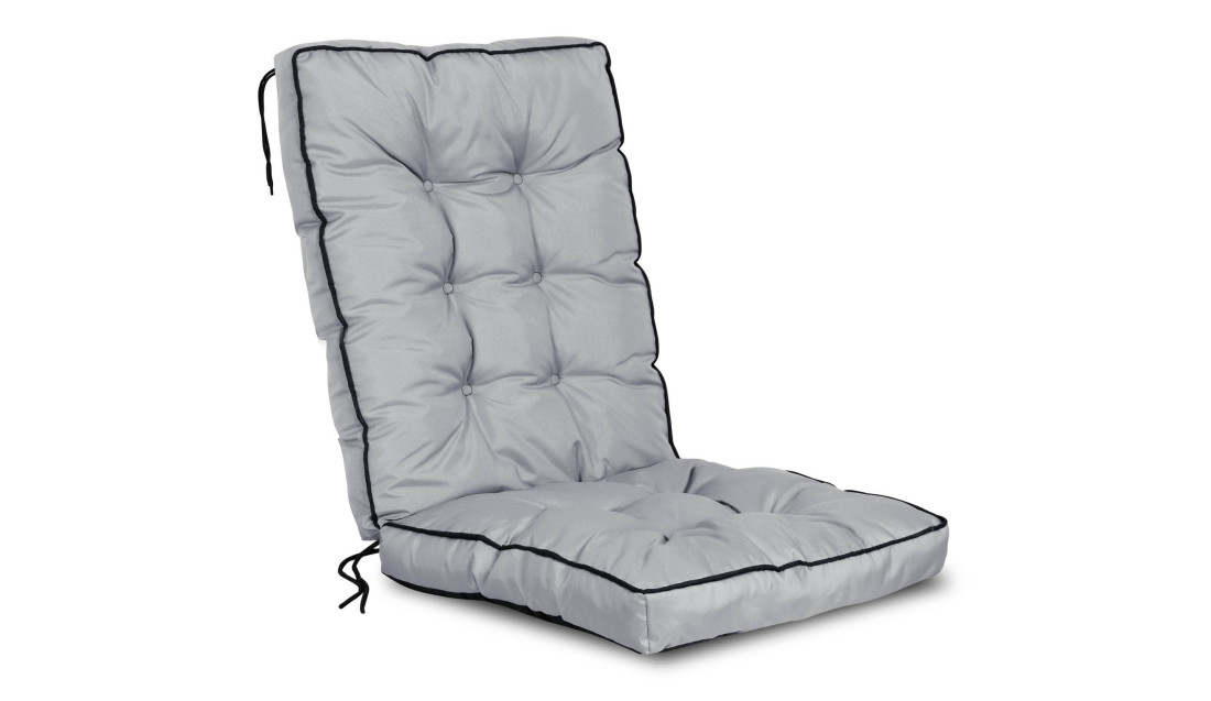 Wytrzymała wodoodporna poduszka Z WYSOKIM BOKIEM I LAMÓWKĄ na krzesło ogrodowe w kolorze ciemnoszarym WYGODA i zadowolenie gwarantowane!