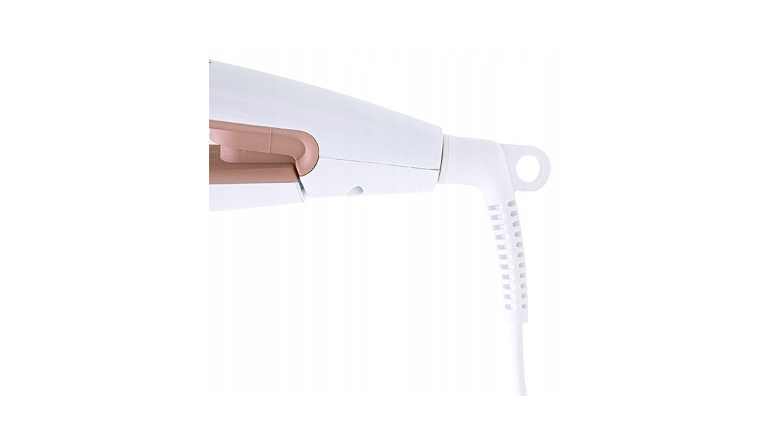 Prostownica z płytkami ceramicznymi o mocy 45W i regulacją temperatury. Skutecznie prostuje odstające i kręcące się kosmyki włosów. Ruchome płytki idealnie dociskają pasma włosów. Zaokrąglone krawędzie płytek zapobiegają zaplątywaniu się włosów. Dobry wybór dla osób, którym zależy na gładkiej fryzurze. Płytki ceramiczne zapewniają bezpieczne prostowanie włosów. Prostownica jest lekka i wygodna w użytkowaniu. Urządzenie posiada również regulację temperatury w zakresie 140-220 stopni Celsjusza.