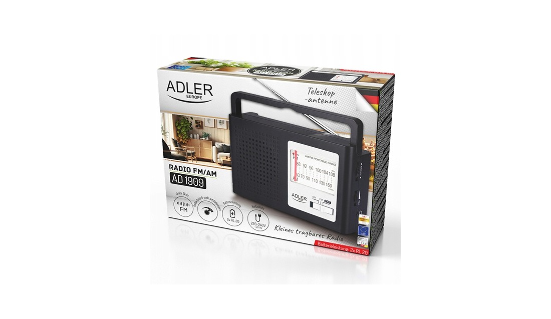 Poznaj radio AM/FM Adler AD 1909 – klasyczne, wszechstronne i łatwe w obsłudze urządzenie, idealne do słuchania ulubionych stacji radiowych w domu lub w podróż. Radio AM/FM Adler AD 1909 to niezawodne i funkcjonalne urządzenie, które łączy w sobie klasyczny design z nowoczesnymi funkcjami. Duża skala i wygodne pokrętła sprawiają, że strojenie stacji radiowych jest proste i intuicyjne. Dzięki możliwości zasilania sieciowego i akumulatorowego, radio to jest idealne zarówno do użytku domowego, jak i w podróży.