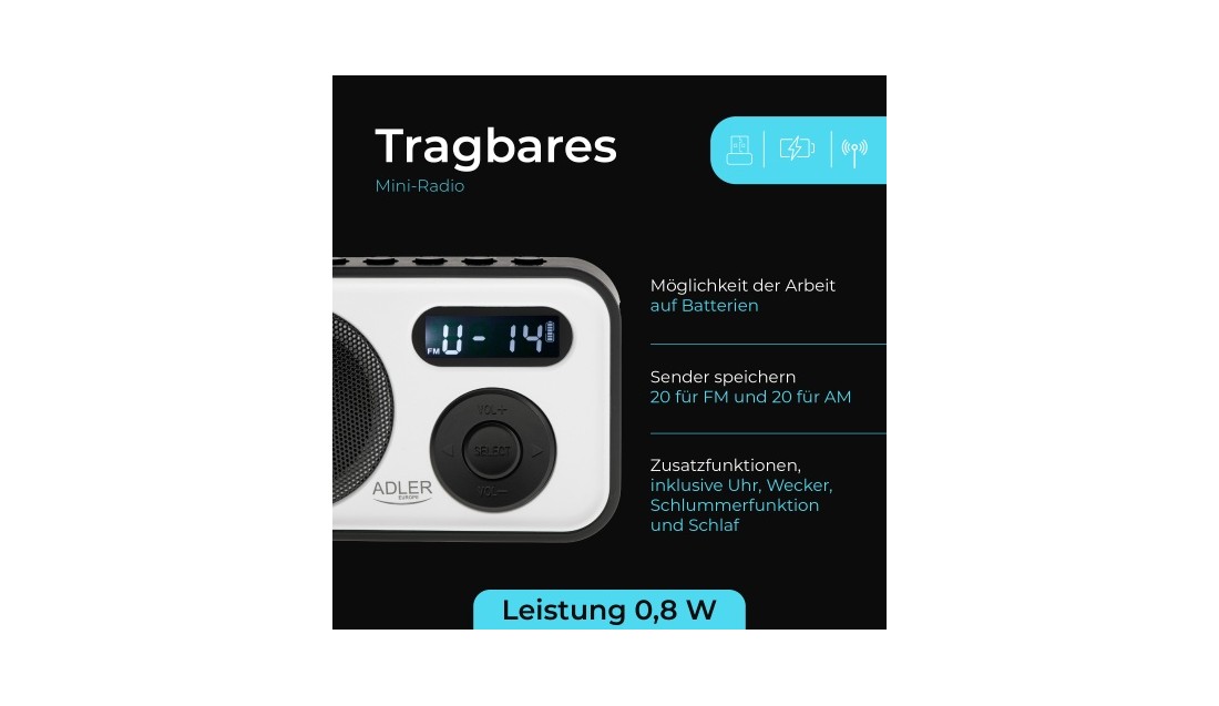 Adler AD 1906 to nowoczesne cyfrowe radio PLL AM/FM, które łączy funkcjonalność z wygodą użytkowania. Dzięki automatycznemu systemowi strojenia i szerokiemu zakresowi częstotliwości zapewnia precyzyjne i stabilne odbieranie ulubionych stacji. Jest idealne do domu, biura, podróży czy relaksu na świeżym powietrzu.