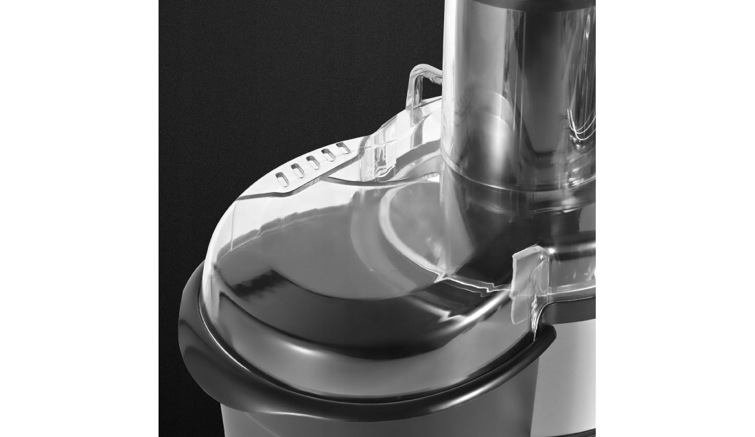 Do sokowirówki dołączony jest funkcjonalny zestaw akcesoriów, w tym popychacz oraz dzbanek o pojemności 1 L z pokrywką , w którym możesz serwować sok. Dzięki pokrywie możesz przechowywać sok w lodówce, mając pewność, że zachowa świeżość i nie przejdzie zapachami innych produktów. Wbudowany separator piany pozwala uzyskać klarowny napój o idealnej konsystencji.