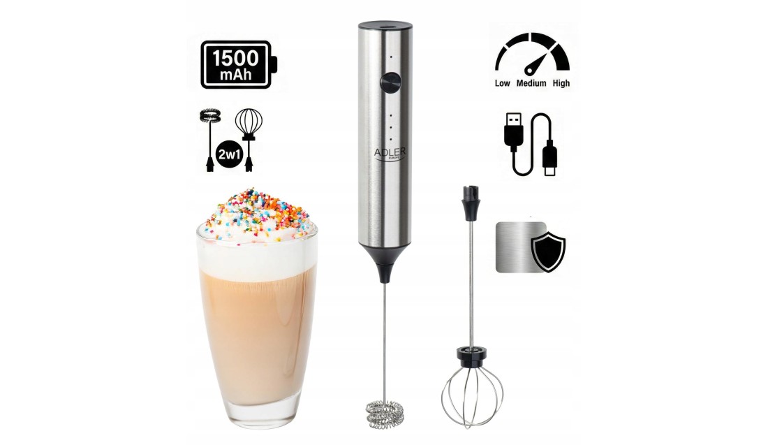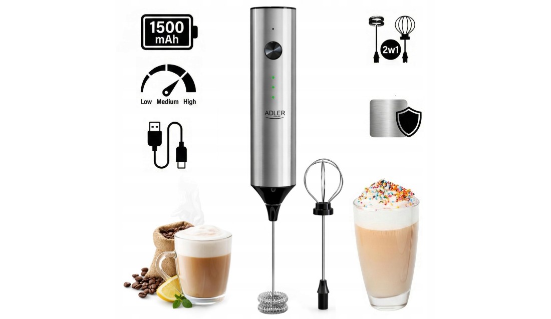 Akumulatorowy SPIENIACZ do mleka kawy ręczny ADLER