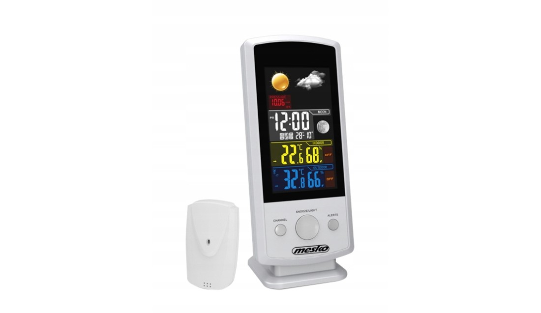 Zmieniający się nieustannie klimat jest źródłem niespodzianek pogodowych, gdyż wystarczy godzina, aby ze słonecznego dnia rozpętała się burza z piorunami. Stacja pogodowa MESKO MS 1177 pozwoli na bieżąco kontrolować zmiany aury i temperatur, co może stanowić podpowiedź, jak będzie wyglądał nasz dzień. Dzięki dodatkowym funkcjom jest to bardzo przydatne urządzenie dla każdego z nas! Stacja posiada kolorowy cyfrowy wyświetlacz.