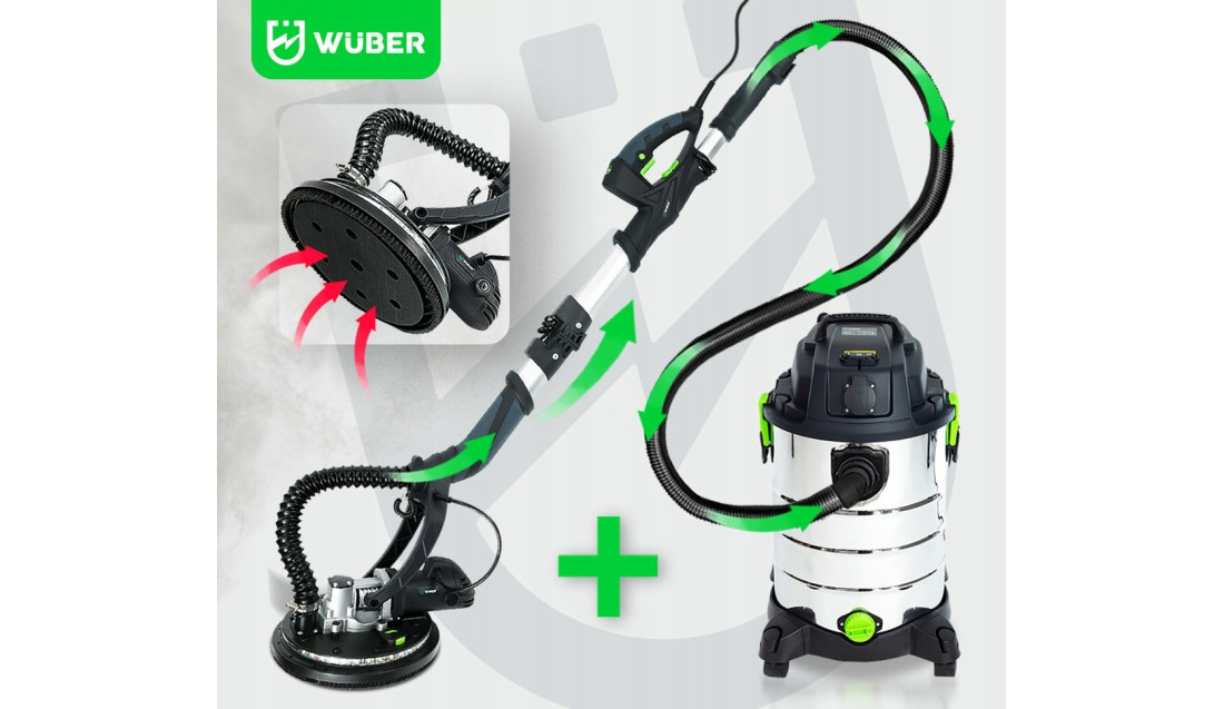 - Szlifierka kompatybilna z odkurzaczami warsztatowymi, co umożliwia utrzymanie czystości w miejscu pracy. Odpowiedni odkurzacz znajdą Państwo na naszej innej aukcji – model Wuber W42666.