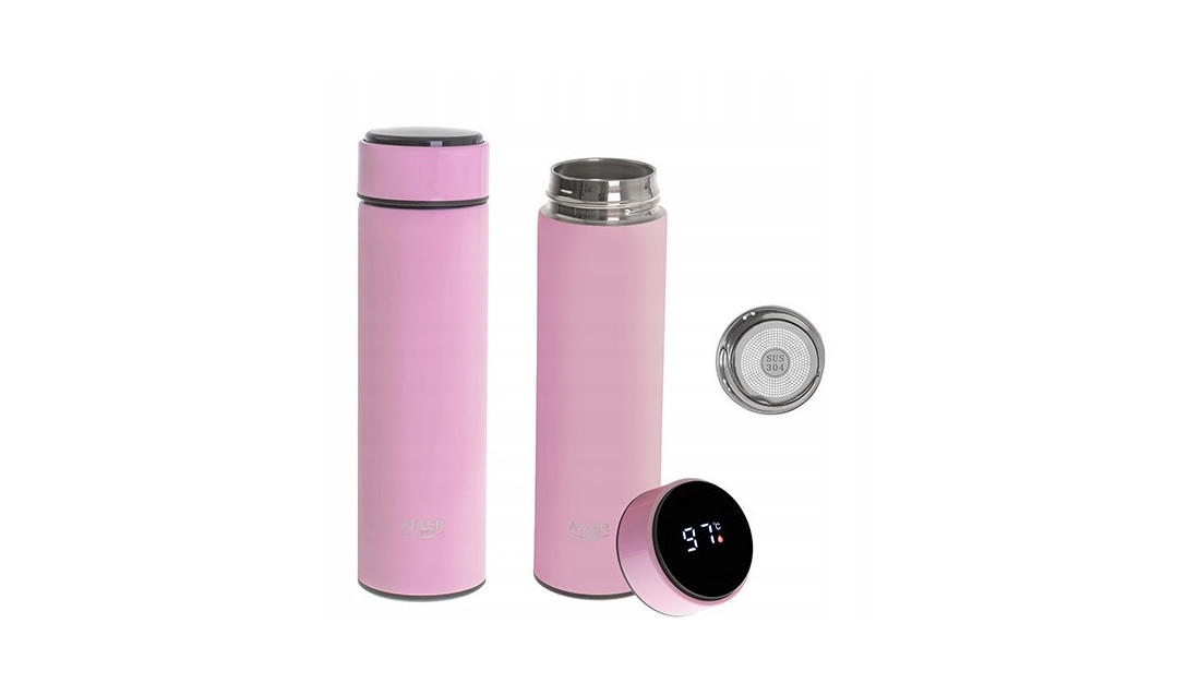 AdlerKUBEK TERMICZNY TERMOS DUŻY na kawę herbatę LED dotykowy różowy