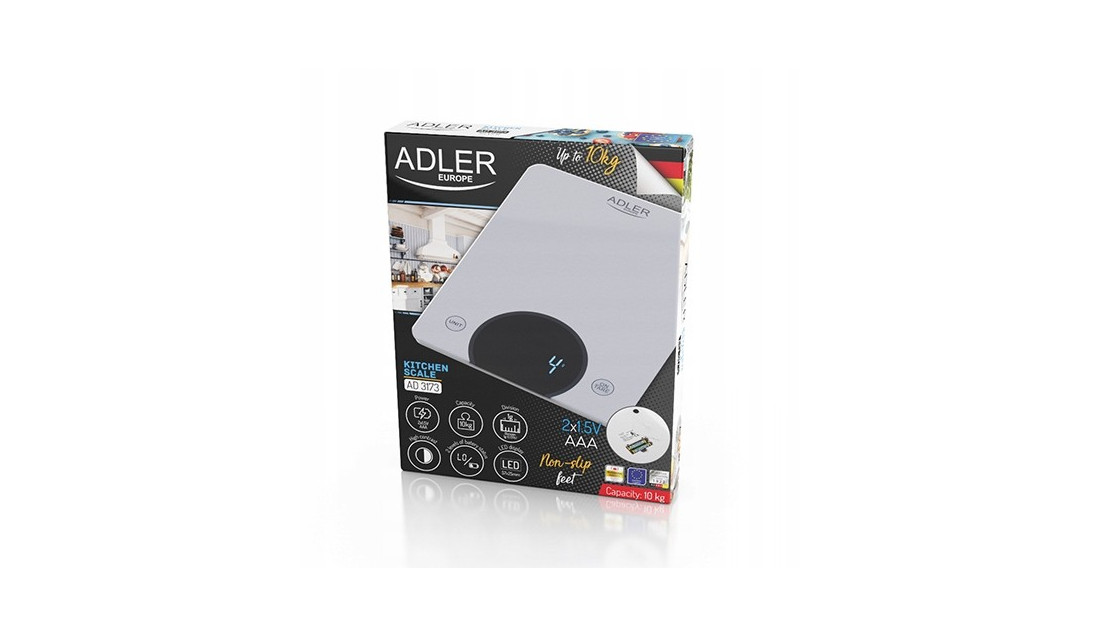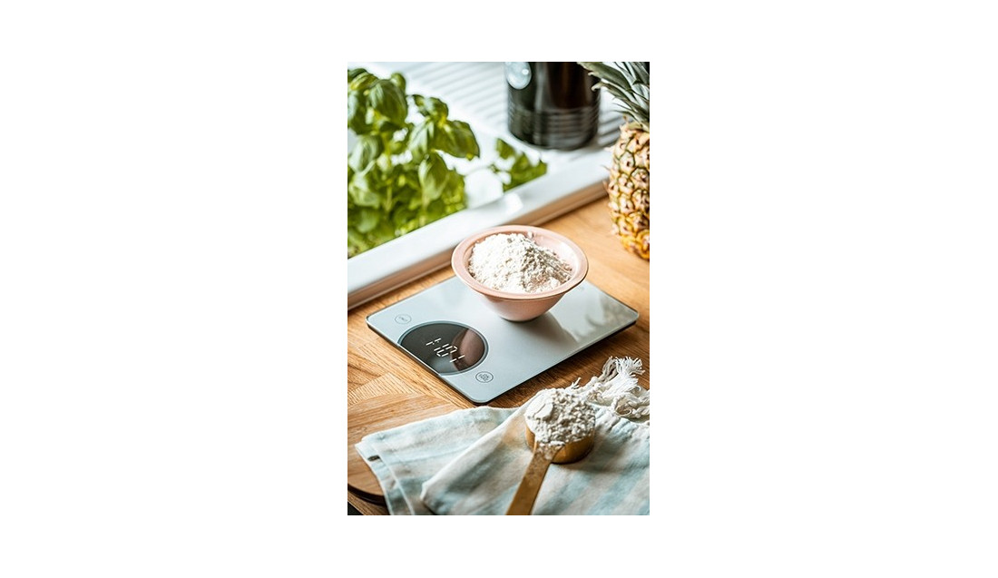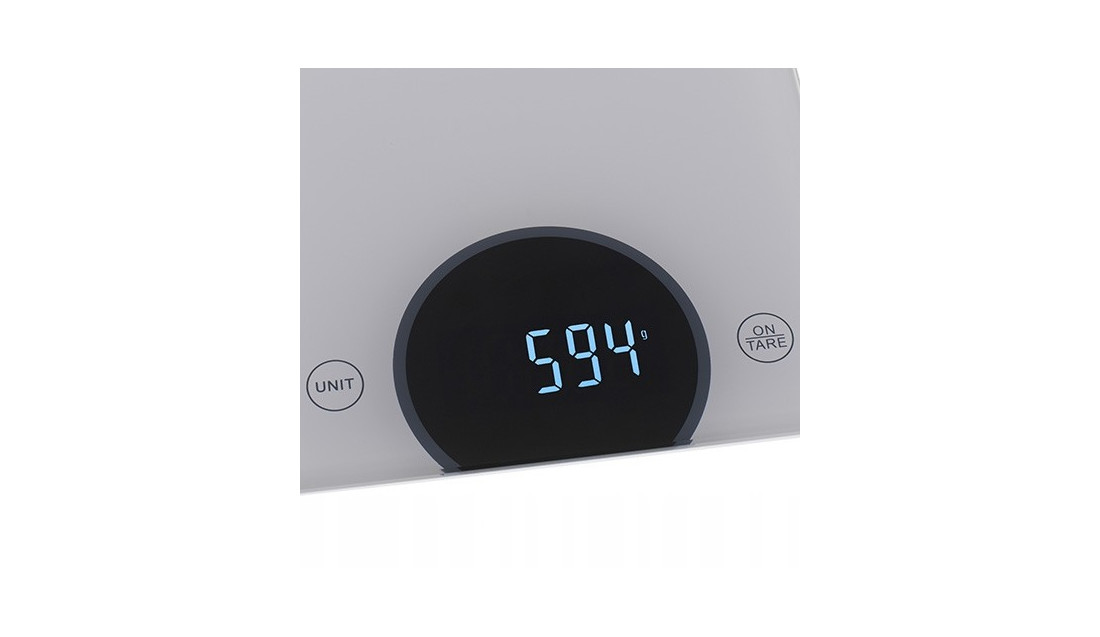 Elektroniczna waga kuchenna o udźwigu maksymalnym 10 kg. Niezwykle pomocna przy ważeniu ciężkich produktów. Ze względu na wyjątkową szarość, waga prezentuje się pięknie w każdej kuchni. W wadze zastosowano wysokiej jakości wyświetlacz LED. Dzięki temu odczyt ma wysoki kontrast i jest niezwykle wyraźny.Cyfry wydają się wyżłobione światłem na czarnej powierzchni.