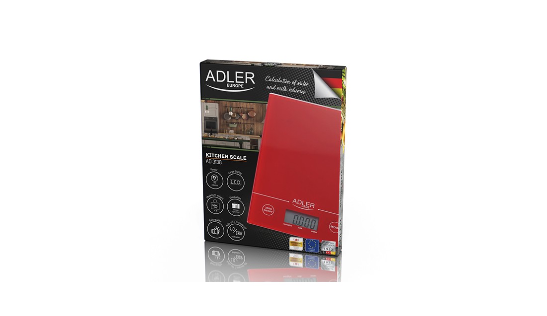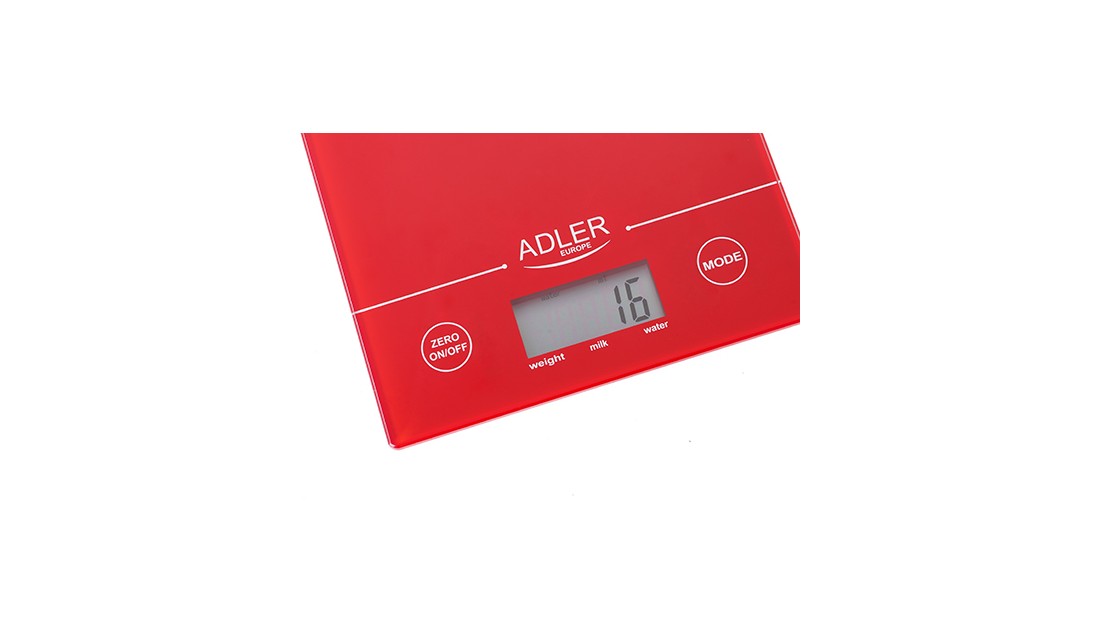 AdlerWaga Elektroniczna Kuchenna 5kg/1g LCD Obliczanie Objętości Czerwona Adler