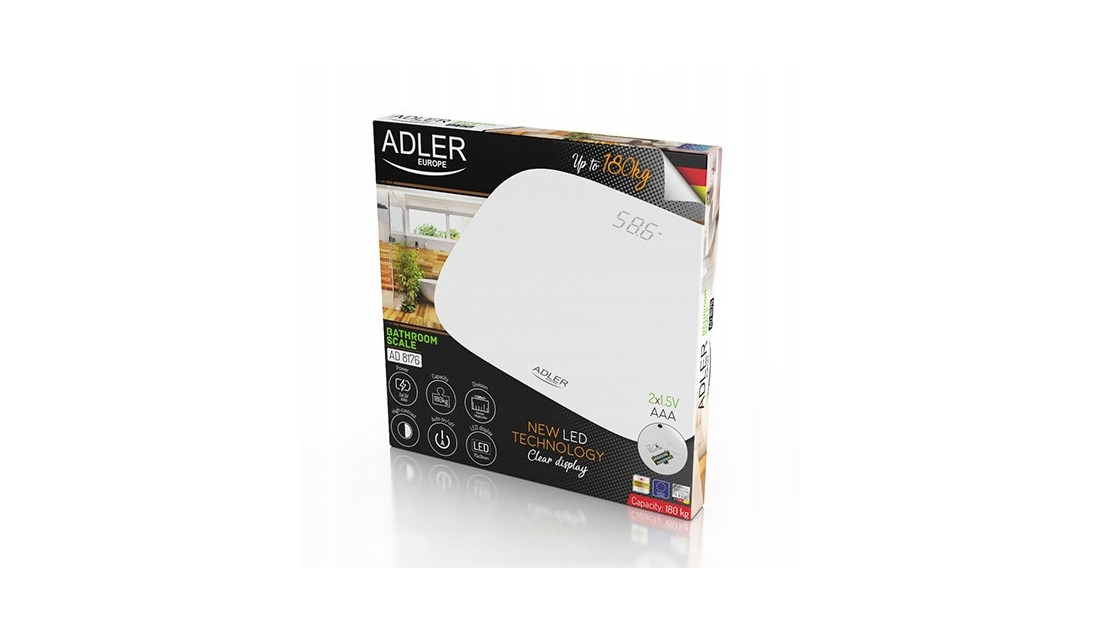 Waga Łazienkowa Do 180KG Wyświetlacz LED Szkło Hartowane + Baterie Adler