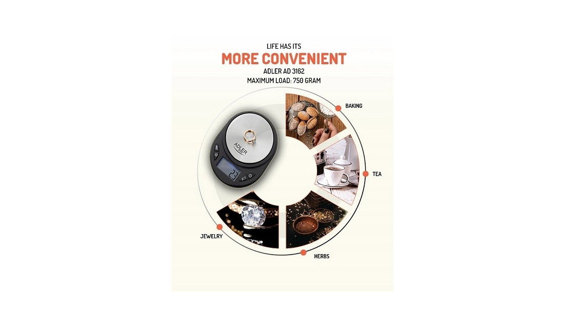 Niezawodne działanie, trwałość oraz dokładność pomiaru to główne zalety wagi precyzyjnej ADLER AD 3162. Intuicyjna obsługa, niewielkie rozmiary sprawią, że proces ważenia będzie szybki i wygodny. Waga zapewnia dokładne pomiary a wysokiej jakości konstrukcja pozwoli cieszyć się jej działaniem przez wiele lat. Lekkie, przenośne urządzenie do zastosowań domowych oraz jubilerskich, ciekawe wzornictwo i czytelny wyświetlacz sprawiają, że jest to idealny wybór, jeśli szukają Państwo profesjonalnego urządzenia do pomiaru wagi!