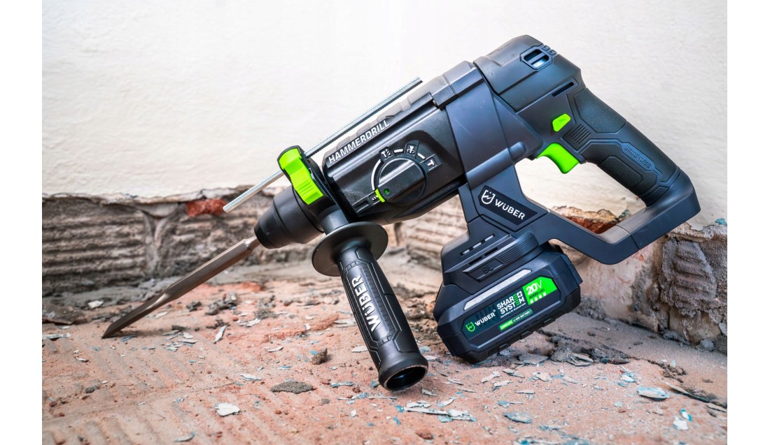 Wuber share + system to dedykowana linia elektronarzędzi napędzanych UNIWERSALNYMI AKUMULATORAMI o dużej pojemności i jednakowym napięciu, pasującymi do WSZYSTKICH urządzeń z tej serii