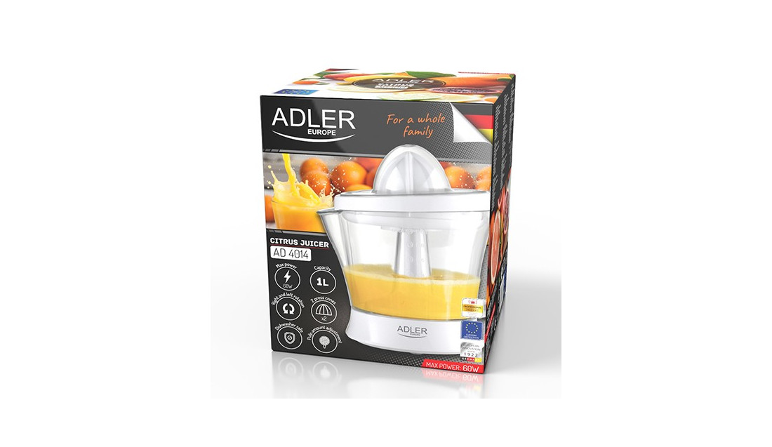 Wyciskarka do Cytrusów Owoców 1L 60W Rgulacja 2 Wymienne Stożki Adler Biała Załączone wyposażenie brak