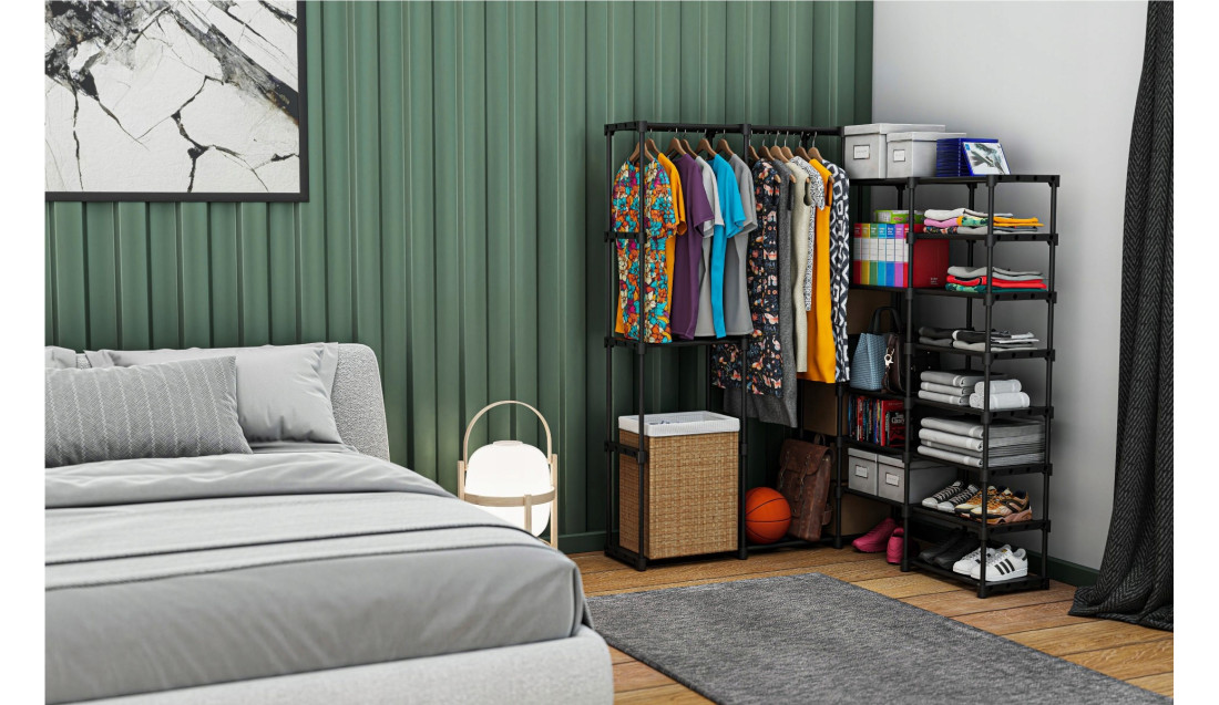 Nie musisz inwestować w drogą szafę na wymiar, aby funkcjonalnie zorganizować swoją garderobę. Stojak na ubrania i buty Keeper 6.0 możesz zamontować na kilka różnych sposobów, dzięki czemu świetnie nadaje się do pomieszczeń o różnym metrażu i układzie. Szafa na całą ścianę czy do narożnika – to zależy od Ciebie!